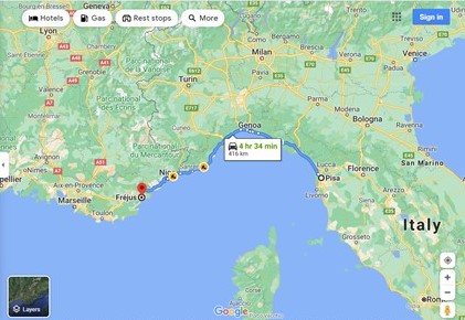 After marvelling at its crooked elegance and taking the customary “holding the tower” photos, we continued our journey to Frejus in the south of France—420 scenic kilometres along the Italian Riviera.