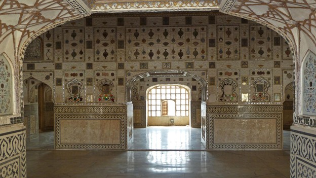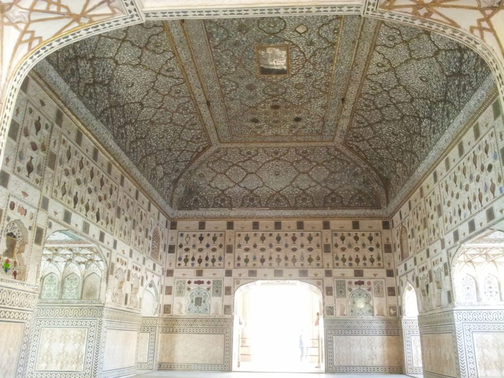 Unlike many purely military forts, Amber was designed as both a defensive fortress and a luxurious royal residence. Its massive sandstone walls conceal elegant courtyards, ornate gateways like Ganesh Pol, and exquisite palaces. The most famous is the Sheesh Mahal (Mirror Palace), where thousands of tiny mirrors were set into marble so that a single candle could illuminate the entire hall — a dazzling display of craftsmanship.